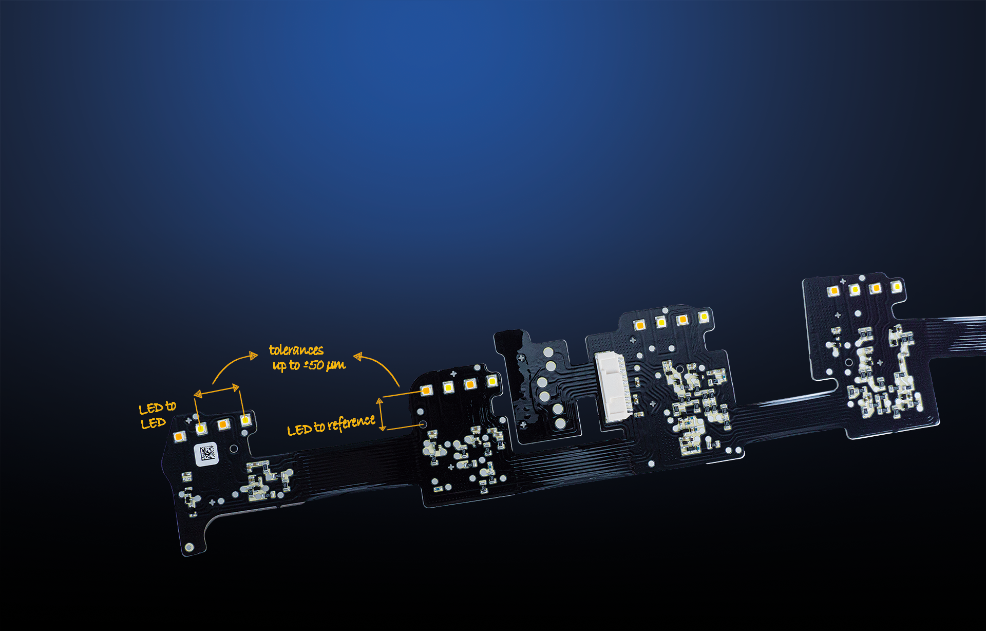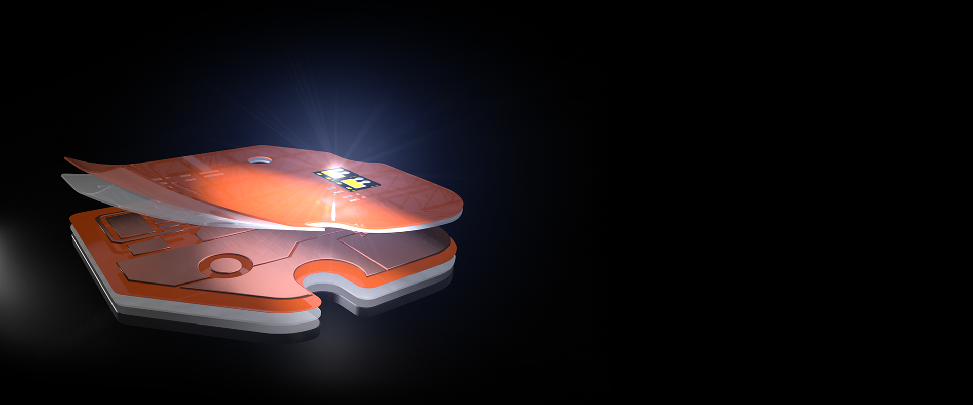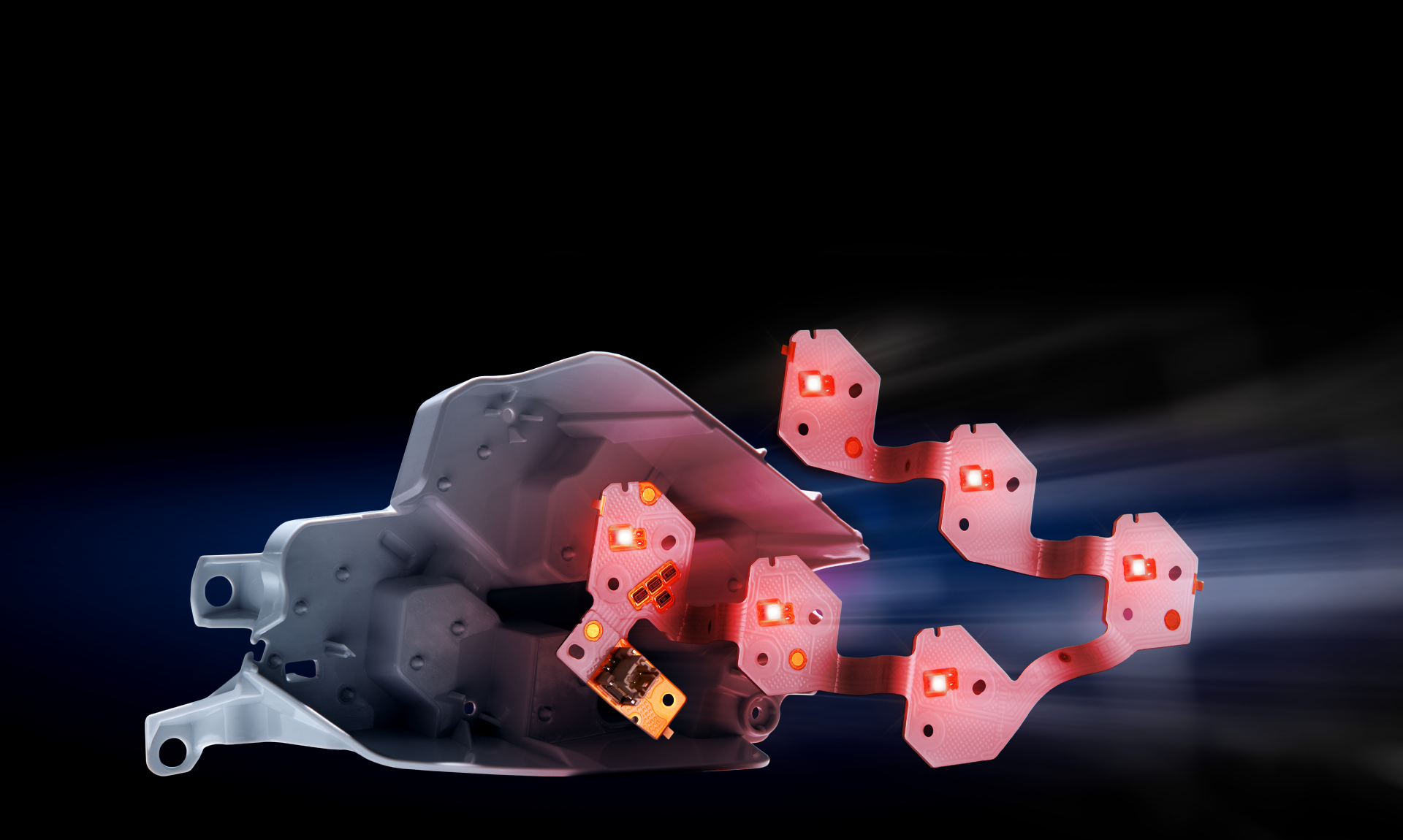 Mektec’s technology is a smart way to meet these requirements: Our Flexible Printed Circuit boards follow your 3D designs while reducing electrical interconnections. The boards require almost no space and come with directly integrated LEDs and other components.